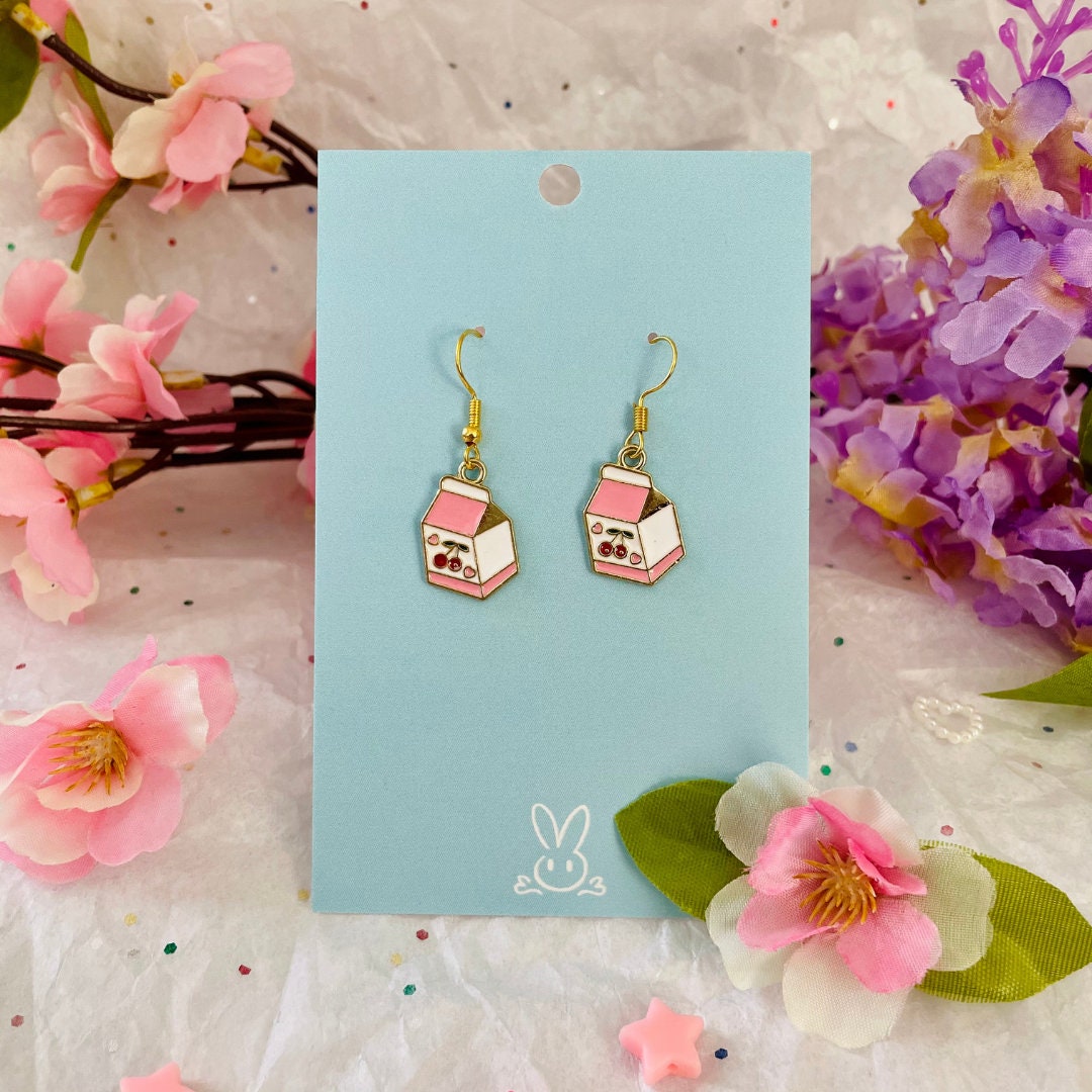 Banana Milk, Cherry Juice Dangle Earrings